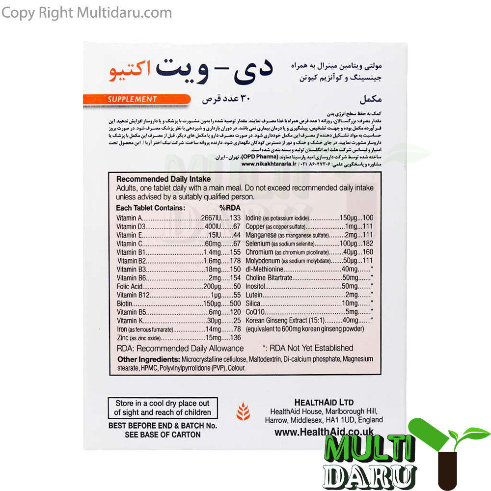 قرص دی ویت اکتیو هلث اید 30 عددی