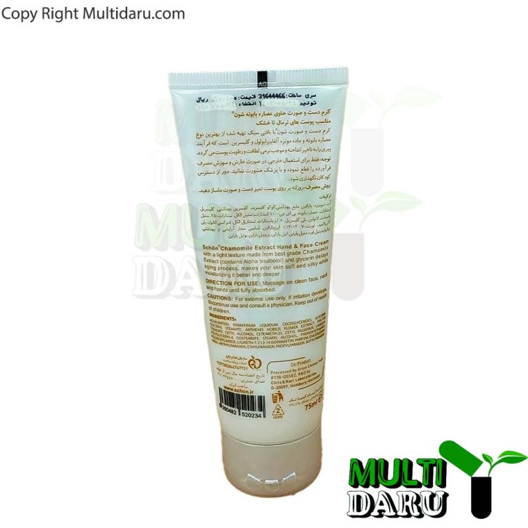 ترکیبات اصلی کرم مرطوب کننده شون بابونه 75 میل:
