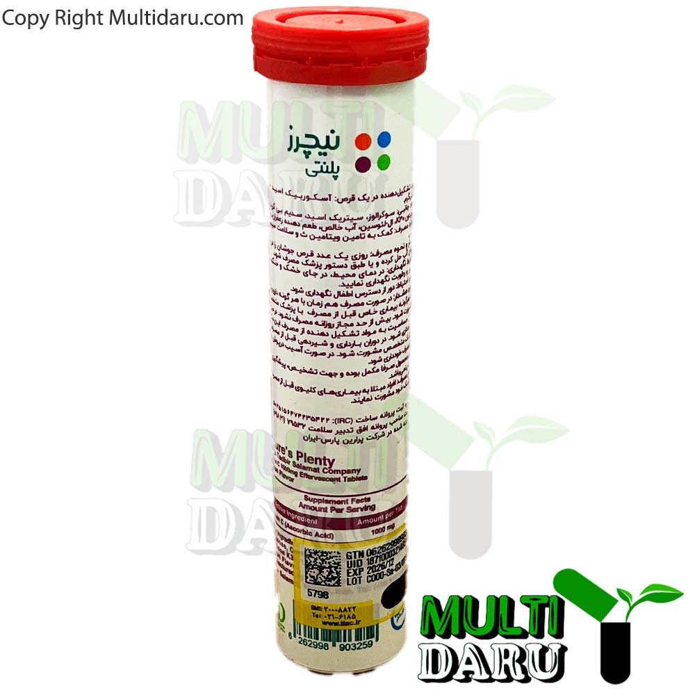 قرص جوشان ویتامین سی 1000 میلی گرم نیچرز پلنتی طعم زعفران 20 عددی