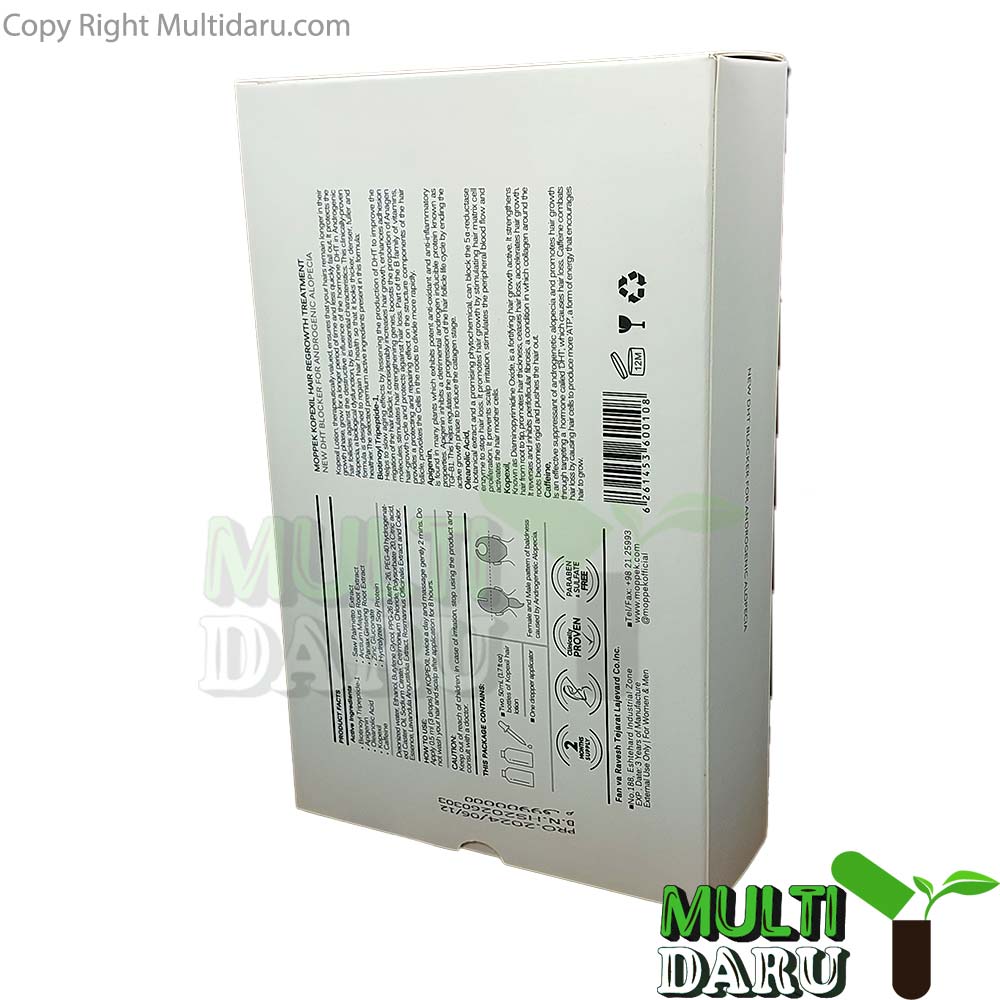 لوسیون کوپکسیل موپک، حاوی اکتیوهای مؤثر در درمان ریزش مو آندروژنیک و تقویت فولیکول مو می باشد. ترکیبی از بیوتین، کوپکسیل، کافئین، زینک، پروتئین هیدرولیز شده سویا، و عصاره گیاهان ساوپالمتو، مجوس و جنسینگ که با توقف عملکرد آنزیم 5α-R و کاهش میزان DHT،چرخه تولید و رشد مو را به حالت طبیعی باز می گرداند. بر خلاف سایر قسمت های بدن، در هر دسته مو کف سر، 4-3 تار می روید که با شروع آلوپسی آندروژنیک، این تعداد کاهش یافته و یا به طور کامل قطع می شود.